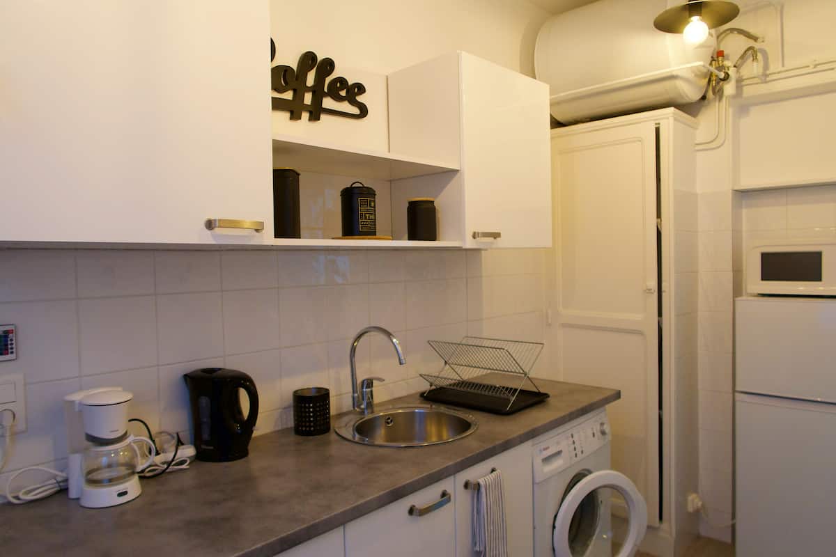 Pour adapter le logement aux séjours longue durée, l’hôte a inclus les équipements suivants : cuisine, lave-linge, climatisation et chauffage.